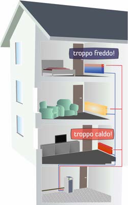 Se il fabbisogno di calore dei singoli ambienti dovesse cambiare a causa di interventi di riqualificazione energetica dell’edificio - ad esempio la posa dell’isolamento o la sostituzione dei serramenti - il funzionamento del sistema si adegua immediatamente e in modo automatico al nuovo fabbisogno. Il sistema reagisce anche dinamicamente alla modifica delle impostazioni di temperatura e garantisce una distribuzione costante e uniforme del calore.