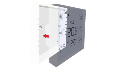 Aufputzbox für die blossom-ic Raumthermostate (Batterieversion) zum Schrauben und Kleben.